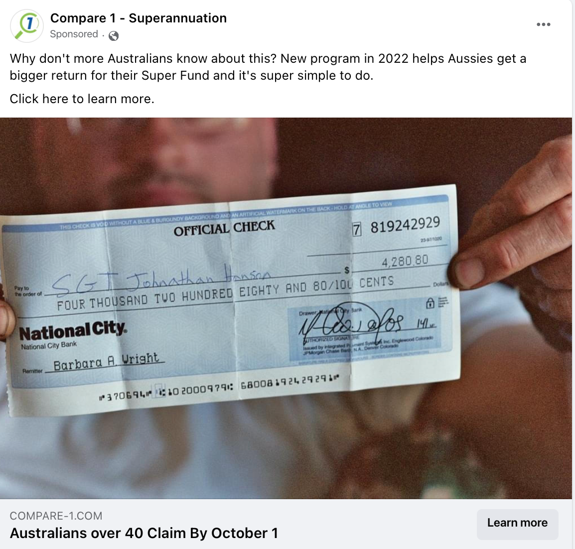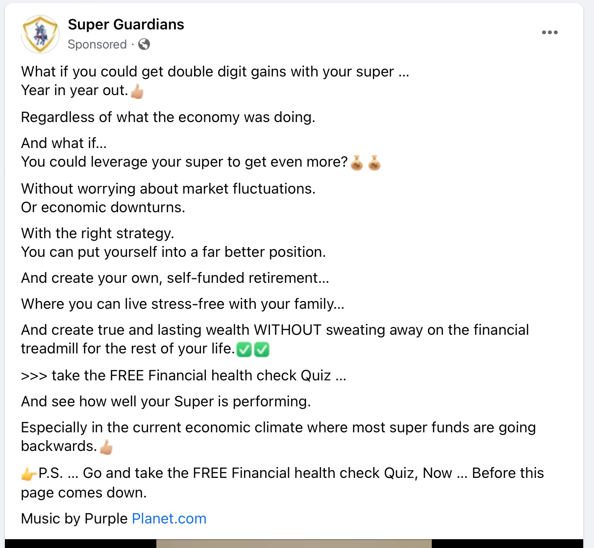 Lead generation ads for financial services either result in legitimate businesses obtaining customers through misleading ads (probably in breach of anti-hawking provisions1) or they lead to scams.