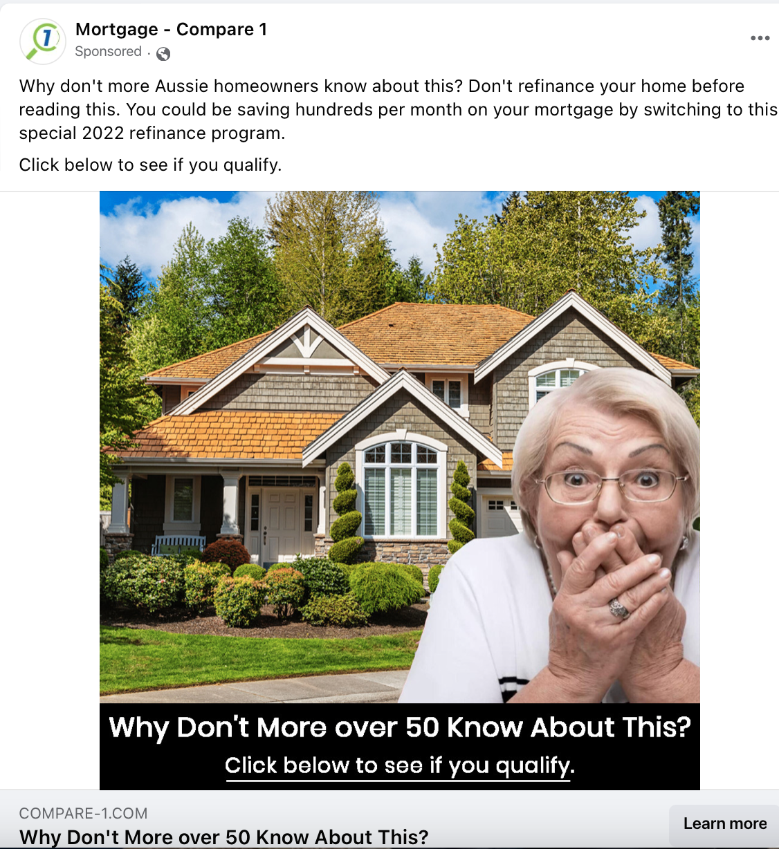 The idea is simple. A big claim – often misleading -– claiming you can cut many years off your mortgage, qualify for a government program, get more from your superannuation or qualify for a debt reduction program. You may need to “apply before” a certain date so you “don’t miss out”.