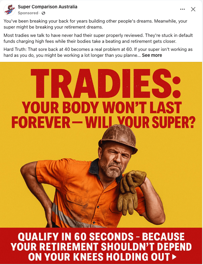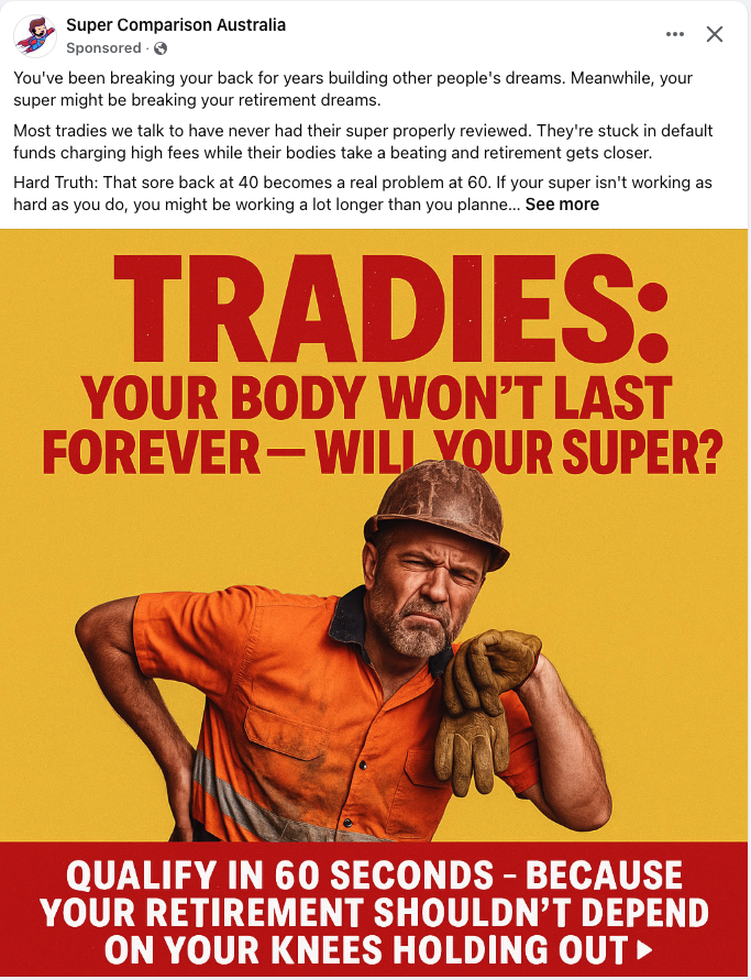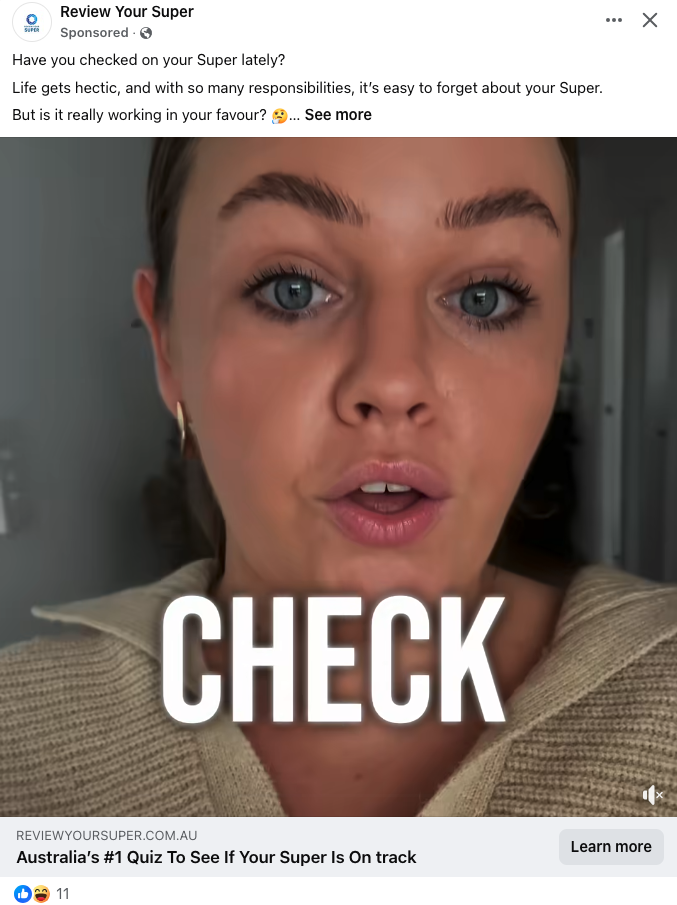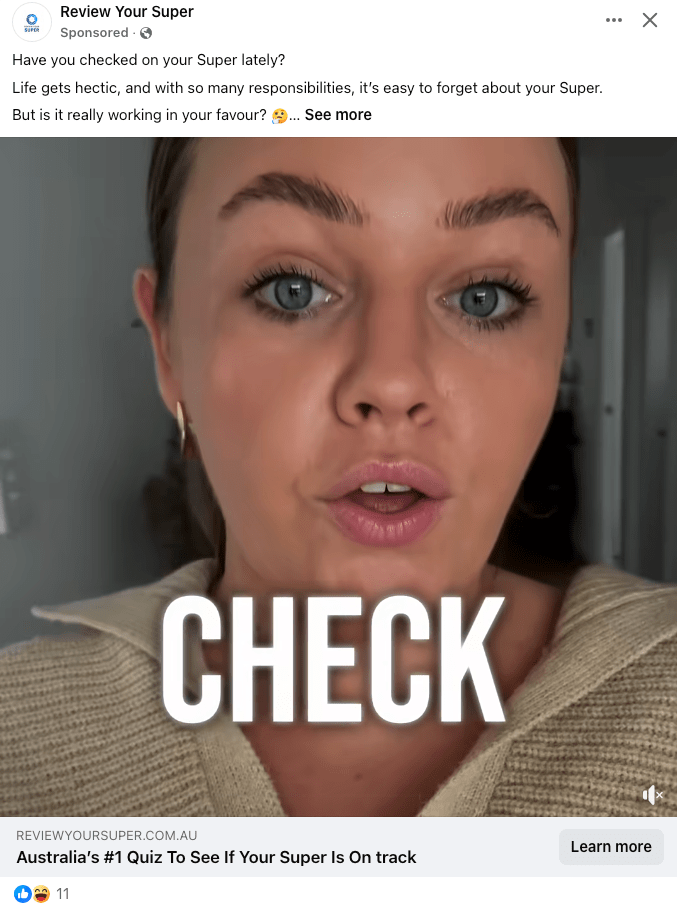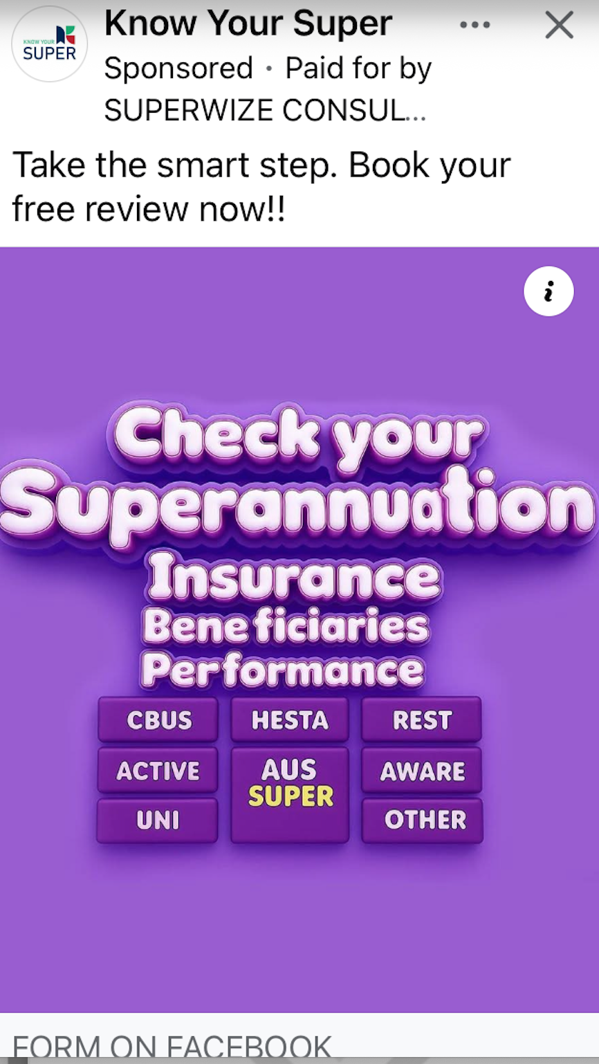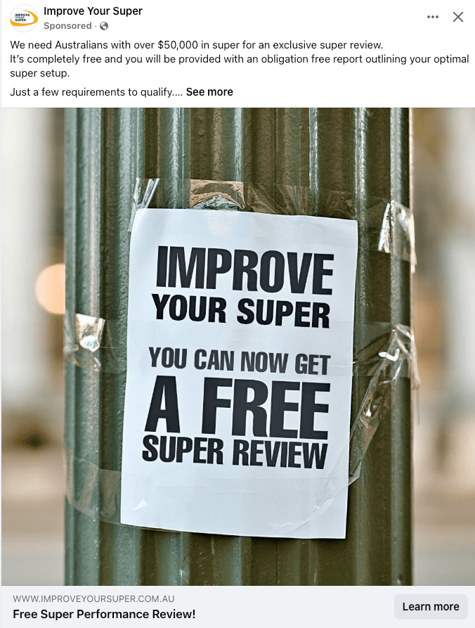 I wrote previously about lead generation, but this week I had another look. Once I started searching the web and Facebook to compare superannuation products, the Facebook ads started popping up. Here is a small selection of the ads on my Facebook in the last 48 hours.