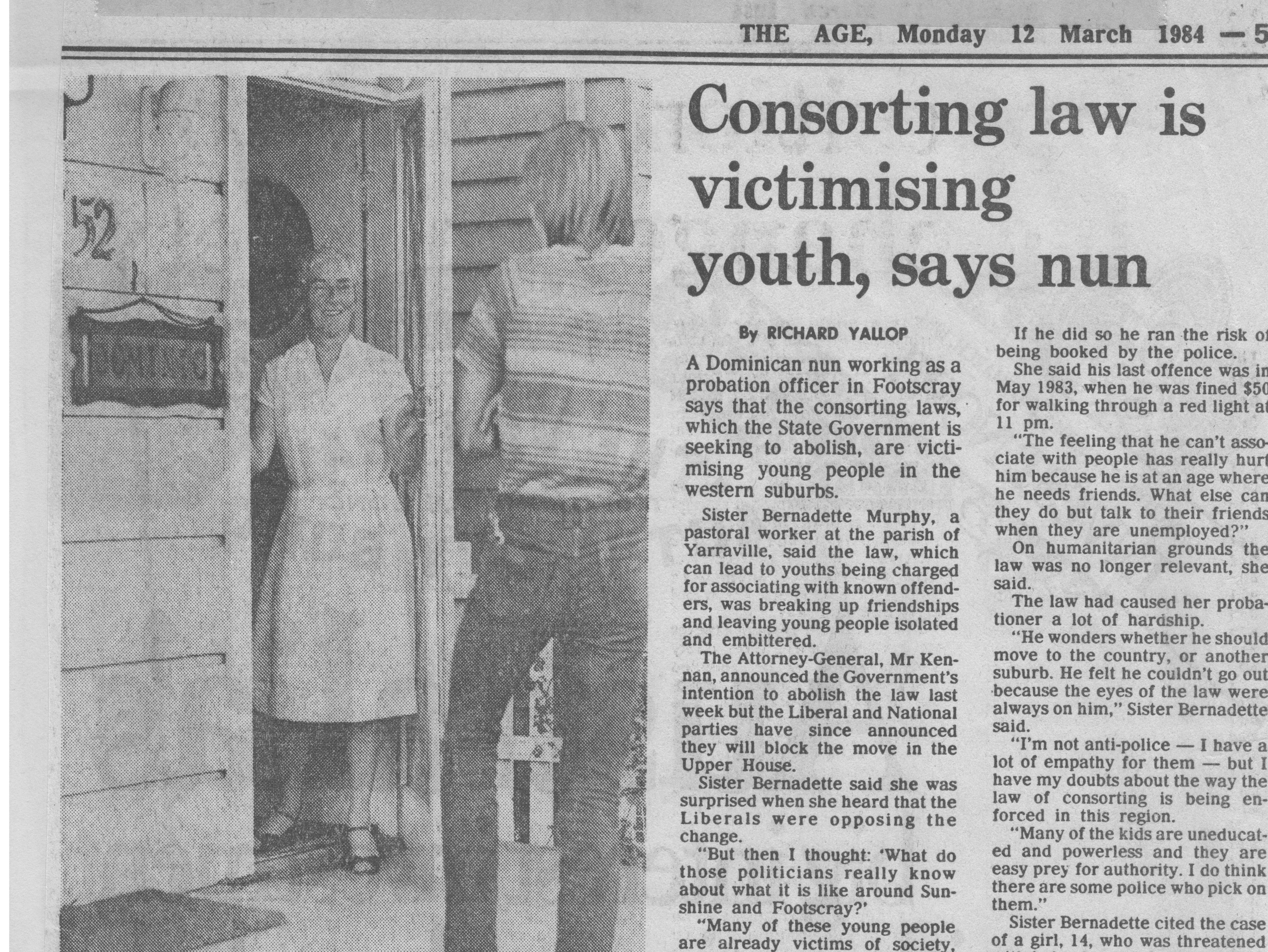There is no defence to consorting (unless it can be proved the individual was not present) but the Magistrate wasn’t prepared to make a guilty finding. The Magistrate made the comment that the case raised the question about whether young people could have friends. I also had a media strategy. There were numerous media reports, including support for our case by a nun who was a probation officer.