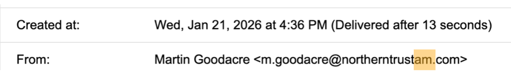 However, the domain on the email address was slightly different to the company’s website. The additional “AM” in the domain (see below) could make sense, as the company’s name ended in “Asset Management” (although they didn’t use that, or “AM” in their web address). I typed in the website using the domain in the email – and it redirected me straight to the legitimate company’s website.
